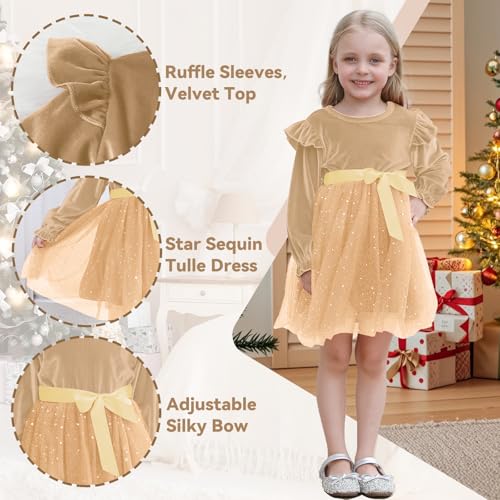 More information about Neutocd Toddler Baby Girl Christmas Dress Long Sleeve Velvet Sequin Tulle Ruffle Winter Party Holiday Dress for Girls