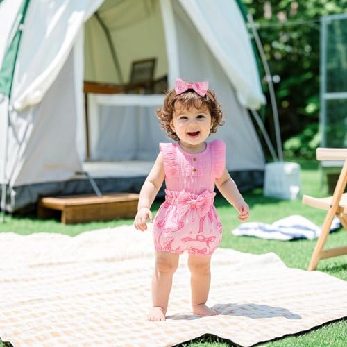 Fabric type: 93%Cotton/7%ElastaneCare instructions: Machine WashOrigin: ImportedPremium velvety for Sensitive Skin Crafted from breathable cotton and stretchy elastane, our baby girl outfits provide a gentle embrace for sensitive skin. The buttery-soft fabric helps prevent irritation while keeping your little baby girl comfortably cool - perfect for warm-weather wear as a infant girl summer 2-piece set!Adorable and Practical Designs From ruffle sleeves to sweet floral prints, every detail of our baby girl clothes is designed for maximum cuteness. Snap closures make diaper changes a breeze, while elastic waistbands ensure comfy movement.Machine-washable for baby girl clothes.For all of life’s sweetest occasions Perfect for your baby's sweetest occasions! These versatile outfits sets transition seamlessly from park playtime to 1st birthday parties, family photos shoots, cake smash sessions,or baby girl showers.True-to-Size: (0-18months) Thoughtfully sized including newborn baby (0-3months) ,3-6months baby girl shorts , 6-12 months summer clothes. toddler girl (12-18months).Perfect Gift for Toddler Girl Each set arrives 1st birthday gift with a romper, shorts, and headband—no extra styling needed! Ideal for baby girl clothing, holidays even newborn photo shoot outfits with headband. Perfect for everyday use. top-grade materials and excellent craftsmanship ensure long-lasting durability.