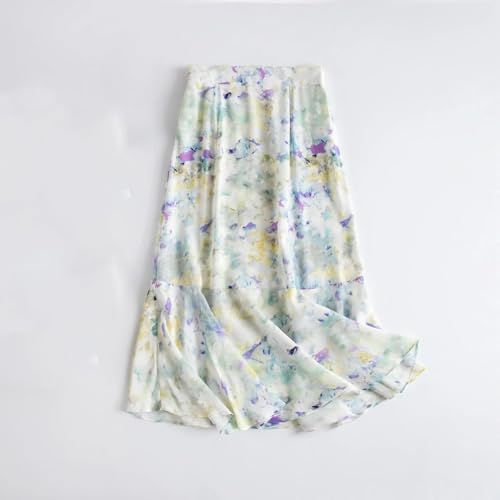 sizzling ! Women's High Waist Mulberry Silk Fishtail Midi Skirt Printed Loose Vacation
