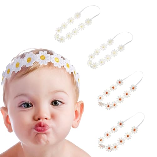 4PCS Baby Girls Daisy Flower Bows Headbands Spring Outdoor Hair Band Handmade Hair Accessories For Kids Toddlers Infants Newborn