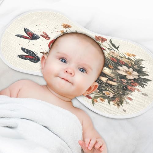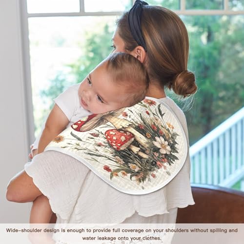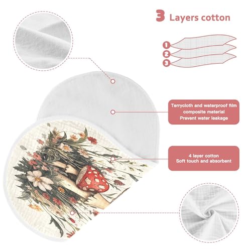 JUZIHAI 4Pack Vintage Mushrooms Baby Burp Cloths plush Cotton Burp Rags,Super Absorbent Burp Cloth Bag for Newborn Baby Boys/Girls