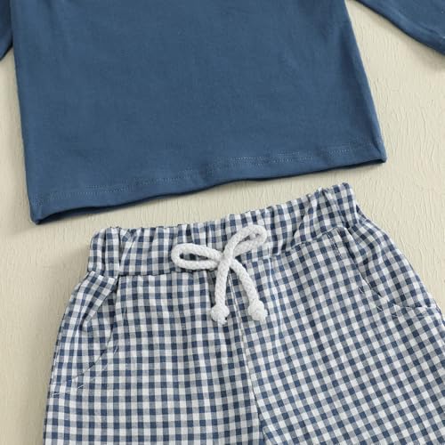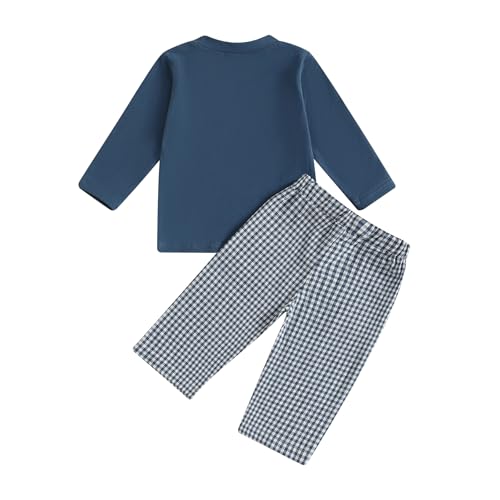 Toddler Baby Boy Fall Outfit Airplane/Boat Smocked Long Sleeve T-Shirt Tops Plaid Pants Set Pilot Planet Clothes