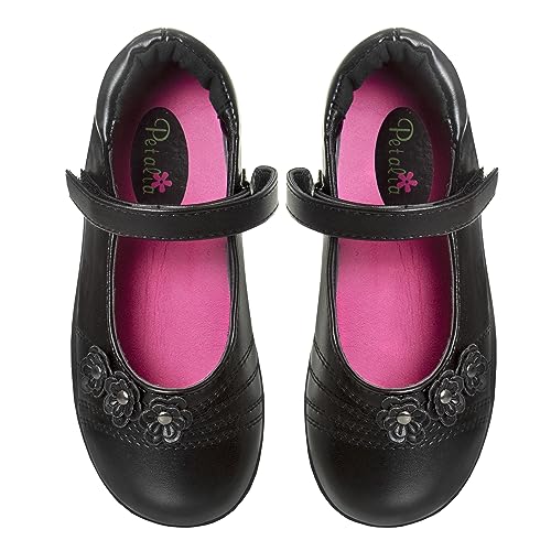 Outer material: ManmadeClosure type: Pull-OnWater resistance level: Not Water ResistantFlat Design - These Mary Jane school shoes feature a elegant flat design with solid colors and a low heel, ensuring a stylish and appropriate look for school or church. Available in black, brown or navy colors.Easy On - The convenient hook and loop strap closure allows for quick on and off, providing a secure fit to your childs feet throughout the day. Available in sizes 5-10 toddler, 1-7 big kid, 11-13 little kid.Comfortable - Designed to fit well with girls school uniforms, these flats ensure happiness on the playground and confidence in the classroom, offering all-day comfort.Cushioned - The quality outsole provides sturdy support, while the leather-lined insole with memory foam offers maximum comfort for long hours of wear.Easy Care - With a spot-clean option, these girl mary jane school shoes are hassle-free to maintain, keeping them looking neat and fresh even with daily wear. Perfect for everyday use. High quality materials and excellent craftsmanship ensure long-lasting durability.