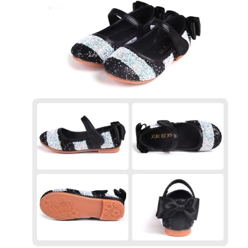 • Cute Bow Ballet Flats: Toddler girl dress shoes flats in a Mix-colored glitter sequins rainbow upper with a cute bow on the back.