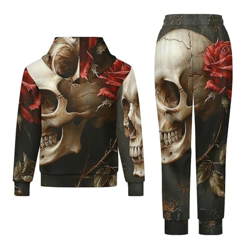 Boys' Girl's Sweatshirt Set 2 Piece Pullover Hoodie Jogger Sweatpants Pants, Skull And Rose Art