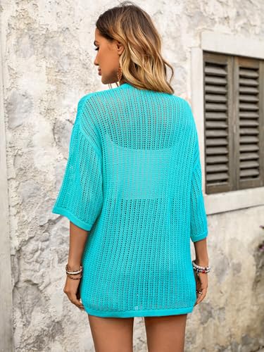 BB&KK Lightweight Summer Crochet Cardigan for Women 3/4 Sleeve Open Front Sheer Knit Boho Kimono Cardigans with Pockets