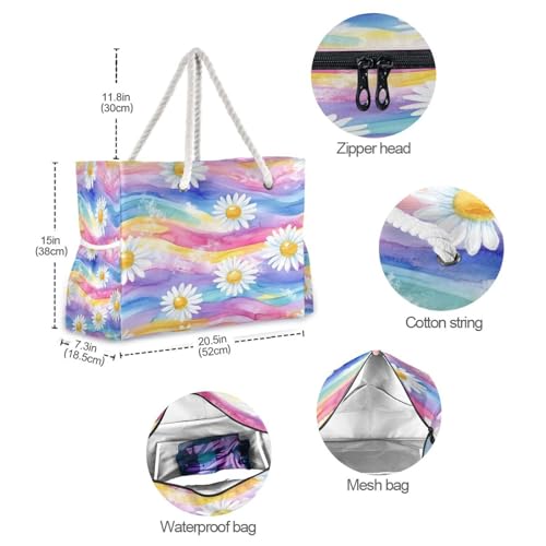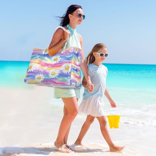 Why Choose Rainbow Daisy Beach Bag & Travel Tote Bag Large Sandproof with Zipper Closure, Wet Pouch for Swim Gym Travel, Lightweight Foldable Outdoor Bag?