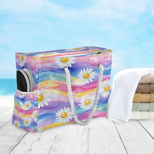 This Rainbow Daisy Beach Bag & Travel Tote Bag Large Sandproof with Zipper Closure, Wet Pouch for Swim Gym Travel, Lightweight Foldable Outdoor Bag combines elegant design with practical functionality. Every detail has been carefully considered to ensure you get the finest possible experience. The finest construction means this product will serve you well for years to come.
