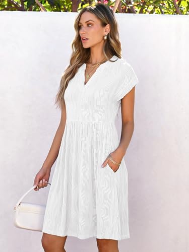 • Features - Cap sleeve dress with a v-neck design, pocket detail, textured fabric, and casual style, a fashionable dress for spring and summer. This dress is flawless for daily wear, the office, outdoor activities, and street style.