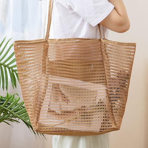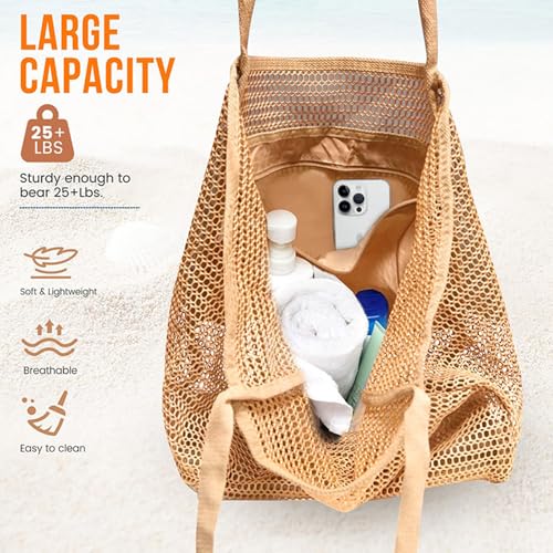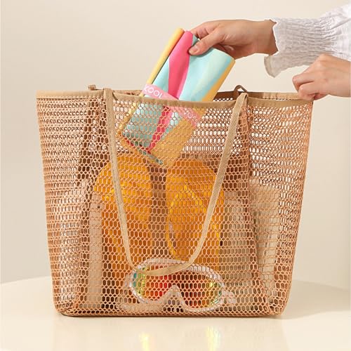Large Beach Bags for Women, Mesh Beach Tote with Zipper, Foldable Pool Tote Bag Travel Beachbag Waterproof Sandproof