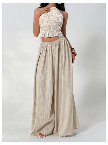 SHENHE Women's Wide Leg Palazzo Pants High Waist Textured Flowy Pants Travel Vacation Trousers