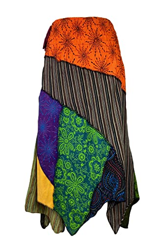 Why Choose Agan Traders Women's 2025 Spring Gypsy Tribal Boho Hippie Cotton Asymmetrical Summer Patch Highwaist Skirt?