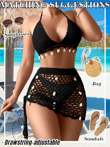 More information about Womens Sexy Two Piece Cover Up Skirt Set, Backless Shell Boho Crochet Swimsuit Coverup, Summer Beach Vacation Outfits