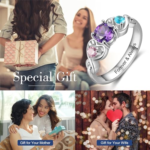 Personalized Mothers Rings with 3 Birthstones Names Engraved Sterling Silver Mom Daughter Grandma Ring Customized Anniversary Promise Rings for Grandma Wife