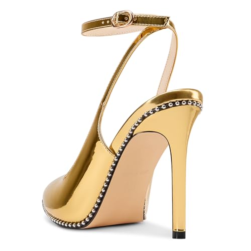 Aachcol Womens Ankle Strap Pointed Toe Beaded Pumps Slingback Stiletto High Heels Wedding Prom Patent Leather Dress Shoes 3.9 Inches Heels