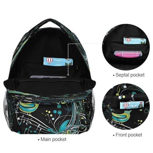 Why Choose Music Notes Bird Black Backpack for School Boys Girls Adults Kids Bookbag Laptop Bag 15L?