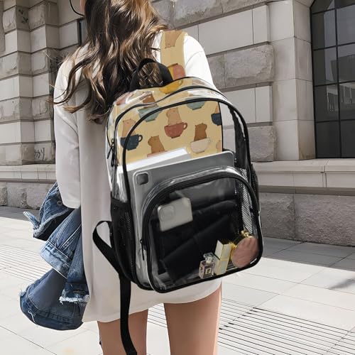 Kids PVC Clear Backpack Capybara Cups Beige Cute Heavy Duty Multi-pockets Large Capacity Transparent See Through Bookbag for School Travel Sport Work