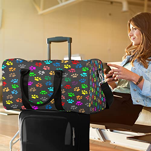 Travel Duffel Bag Cat Dog Paw Print Sport Tote Gym Bag Waterproof Foldable Carryon Weekend Overnight Training Handbag Sports Duffle Bags for Women Men Boys Girls