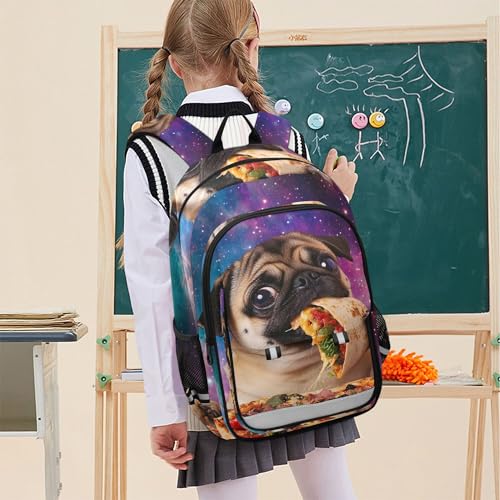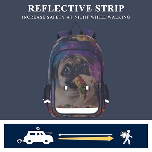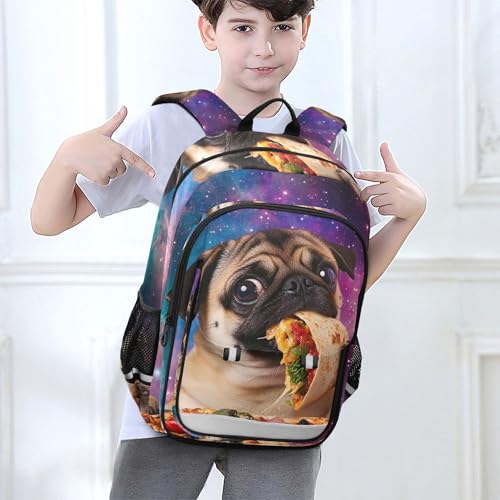 Pug Dog Pizza Taco Galaxy Backpack Lightweight Bookbag Laptop Backpack College School Bag for Boys Girls Kids
