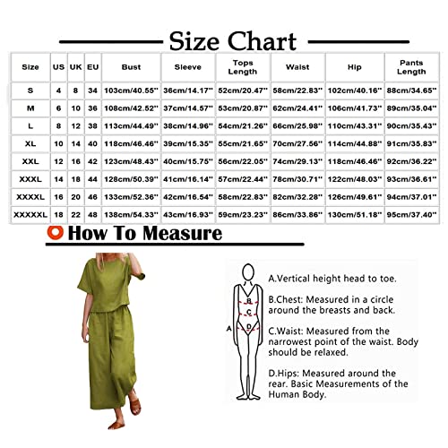 Womens 2 Piece Sets Casual Summer Matching Outfits Linen Suits Short Sleeve Crew Neck Tops Wide Leg Pants Vacation