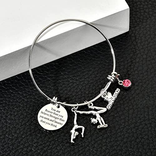 Gymnastics Gifts for Girls Personalized DIY I treasure Gymnastics Bracelet With Birthstone Gymnast Charm Bangle Birthday Christamas Jewelry Gift for Teen Girls