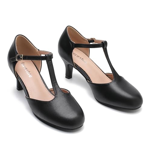 Women's T Strap Pumps Kitten Heels Retro Ankle Strap Buckle Dress Mary Jane Shoes