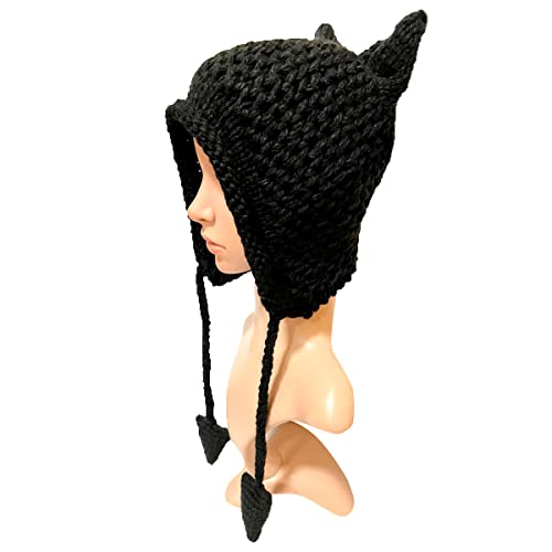 BIBITIME Crochet Beanie Hat Winter Cute Fox Cat Ears Knit Hat Ear Flap Pendent Cap