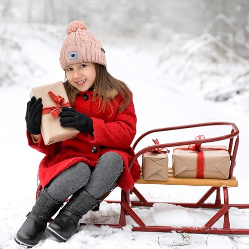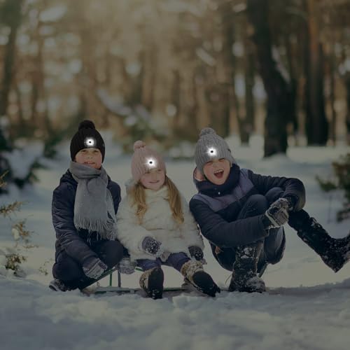 Etsfmoa Unisex Hat with Light for Kids,Winter Knitted Beanie,Gifts for Boys and Girls,Rechargeable Headlamp LED Cap