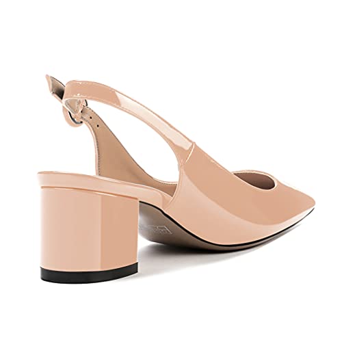 • VERSATILE STYLE: These sexy slingback pumps shoes are characterized by pointed toe, chunky heels and circle buckle clousure design. They go well with any dress and will definitely add polish to your chic look at evening parties, proms, weddings or daily life.