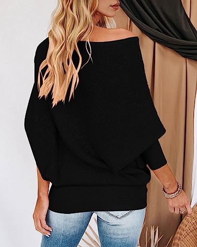 Zenlonr Women's Fall Sweaters 2025 Casual Long Batwing Sleeve Loose Off Shoulder Knit Pullovers Jumper Tops