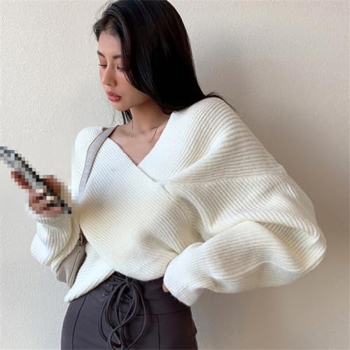 Why Choose Women White V-Neck Knitted Sweater Long Sleeve Sexy Pullover Jumper Knit Tops?