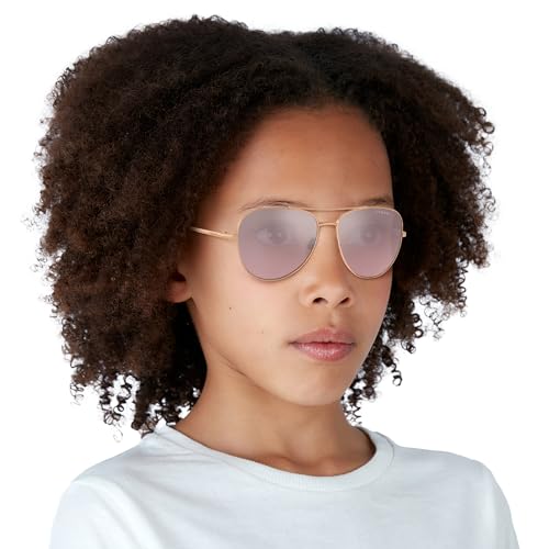Origin: ImportedFRAME FEATURES: VJ1001 Kids' sunglasses feature an aviator, rose gold metal frame with violet to silver mirror gradient lenses. This pair is a kid version of the adult VO4290S sunglasses.faultless FIT: These Vogue Eyewear Junior sunglasses are scaled down to fit kids aged 11-13 years old.100% UV PROTECTION: To protect your eyes from harmful UV rays, these Vogue Eyewear Kids' sunglasses include lenses that are coated with 100% UV protection.POUCH & CLEANING CLOTH INCLUDED: Each pair of Vogue Eyewear Kids' sunglasses come with a cleaning cloth and neoprene pouch to clean and protect your sunglasses from scratches and damage.VISIT THE VOGUE EYEWEAR BRAND SHOP: Click on the Vogue Eyewear link above the product title to shop the entire Vogue Eyewear sunglass and eyeglass assortment. Perfect for everyday use. superior materials and excellent craftsmanship ensure long-lasting durability.
