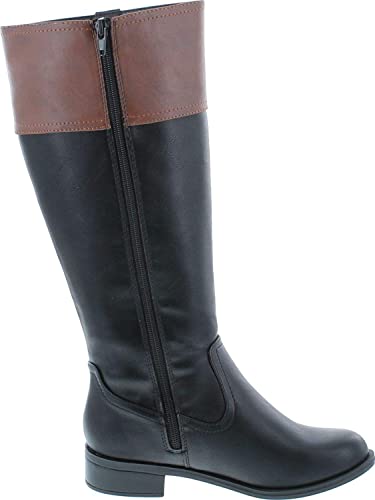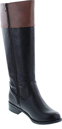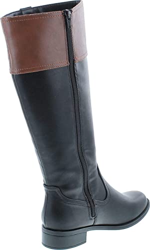 sizzling ! Soda VISA ~ Women Round Toe Two Tone Mid Shaft Low Block Heel Harness Riding Boots