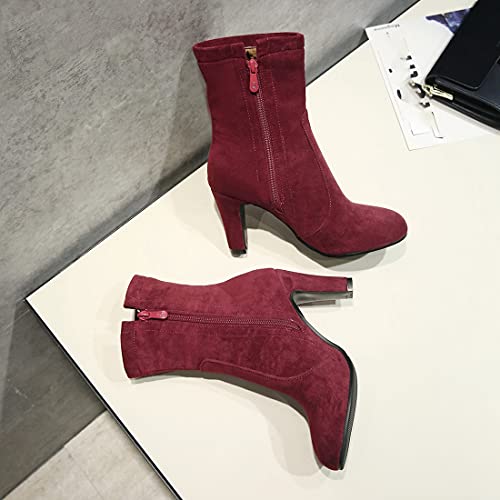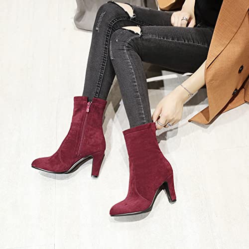VOKLIN Women's Pointed Toe Chunky Block High Heel Dressy Ankle Boots Side Zipper Elegant Dress Short Booties
