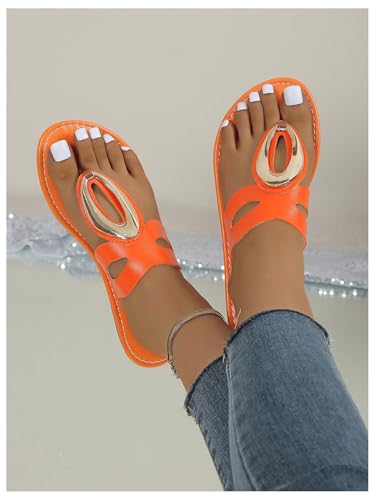 - Features: Metal decor, cut out, open-toe slide sandals, dressy thong sandals for women
