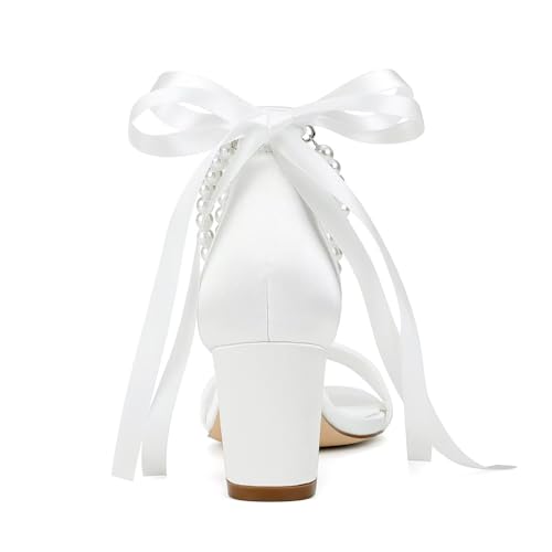 More information about Satin Wedding Shoes for Bride Pearl Heels Bridal Shoes Wedding Heels Block Heel Wedding Sandals