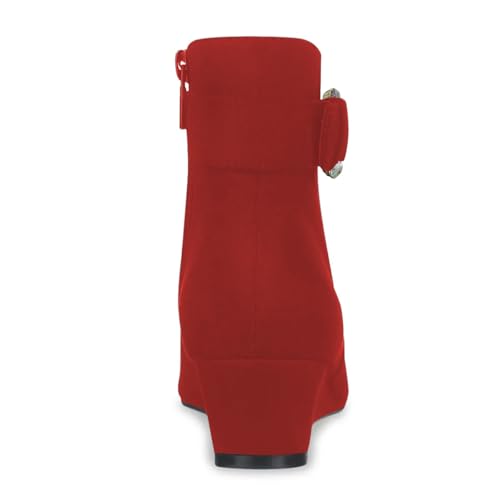 Pazzion Women Elegant Rhinestone Brooch Low Wedge Heel Ankle Boots Side Zipper Closed Toe Booties Fashion Dating Dress Shoes Size 4-16 US