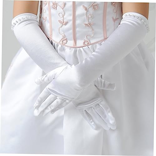 Beaupretty Flower Girl Gloves Long Satin Dress Gloves with Pearl Decor Elegant White Color for Weddings Evening