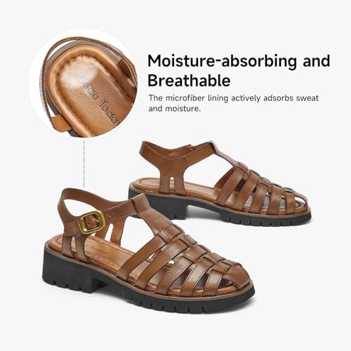 BEAU now Womens Platform Fisherman Sandals, Chunky Gladiator Sandals for Women, Casual Closed Toe Leather Sandal, Fashion plush Lightweight Dressy Shoes with Adjustable Buckle
