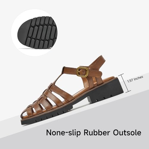 Origin: ImportedSole material: RubberOuter material: 100% Cowhide LeatherClosure type: BuckleJoin Prime Cancel anytimePremium Leather Upper:These fisherman sandals for women feature a high-quality cowhide upper with a distinctive sheen from the natural grain of the cowhide. The leather upper is not only tough and durable, but also adapts to the shape of the foot over time, providing a more snug and comfortable fitAll-Day Comfort: These chunky gladiator sandals are lined with skin-friendly microfiber material, which is soft and breathable, not stuffy. And the cushioned insole can support the foot moderately, alleviate fatigue when walking, so that you are easy and comfortable with every stepClassic Fisherman Design:Our womens leather sandals adopts the enduring fisherman shoe design, classic and versatile. The closed toe style can better wrap and protect the toes; and the adjustable buckle design is convenient to adjust the elasticity of the platform fisherman sandals to ensure wearing comfortAnti-slip Outsole: With a 1.57-inch lightweight platform sole, these fashion platform sandals meets your need for height without causing discomfort when walking, while the foam rubber sole provides excellent slip resistance to ensure solid support with every stepVersatile Style:These comfortable dressy fisherman sandals show different fashion styles whether they are paired with casual denim shorts, flowing dresses, or elegant long dresses. Whether it is daily shopping, work commuting, or to participate in the party, vacation travel and other occasions, can become the highlight of your outfit Perfect for everyday use. finest materials and excellent craftsmanship ensure long-lasting durability.
