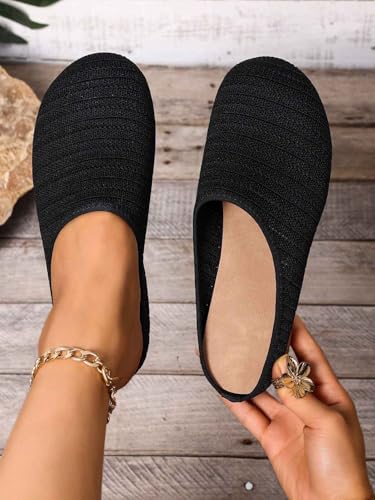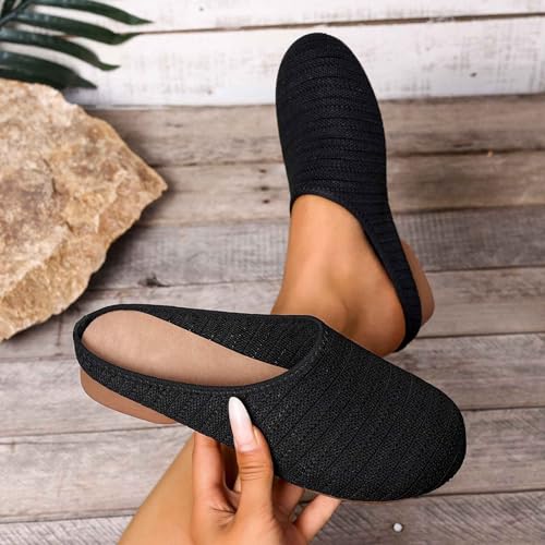 Women's Summer Casual Closed Toe Slippers Breathable Mesh plush Flat Slides for Daily Wear with Jeans
