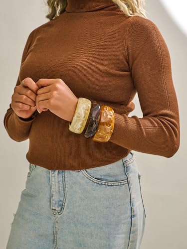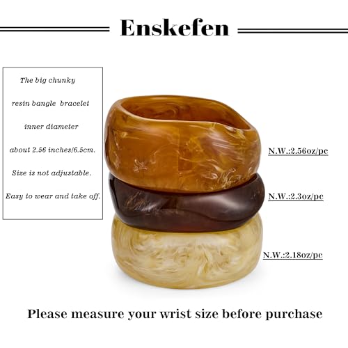 Material: AcrylicMetal type: No Metal TypeClasp type: No clasp typeGem type: No gemstoneSet of 3 Chunky Bangles: Get three exceptional chunky resin bangle bracelets in one set, featuring glossy beige, warm amber, and rich coffee brown colors. Perfect for stacking or wearing solo to match your daily outfits or summer looks.Resin Bangle Size: The acrylic bangle inner diameter is about 2.56in / 6.5cm (Not Adjustable). Fixed size fits most medium to large wrists. Please measure your wrist before purchasing to ensure the perfect fit.High-Quality Acrylic Resin Bangle: Crafted from high-quality acrylic resin materials, these chunky bangle bracelets are both durable and lightweight. The smooth, glossy finish ensures comfort and elegance, making them ideal for all-day wear.Bold Irregular Geometric Bracelet: These resin bracelets feature an irregular, wide design with a glossy marbled texture. Whether you're into boho, retro, or minimalist looks, this acrylic bracelet set makes it a versatile addition to your jewelry collection.Perfect Gift for Fashion Lovers: Whether for birthdays, holidays, or special occasions, this large statement bangle set makes the perfect gift. Its bold design and timeless appeal make it an excellent choice for any woman who loves unique, statement-making jewelry. Perfect for everyday use. superior materials and excellent craftsmanship ensure long-lasting durability.