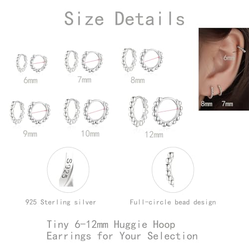 Ball Beaded Huggie Hoop Earrings 925 Sterling Silver Upper Ear Cartilage Helix Small Tiny Mini Sleeper Hoop Earrings