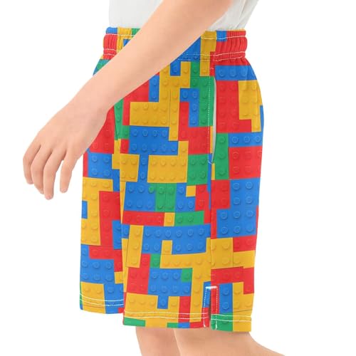 sizzling ! Building Blocks Athletic Shorts with Zipper Pockets, Youth Boys Athletic Running Shorts for Summer