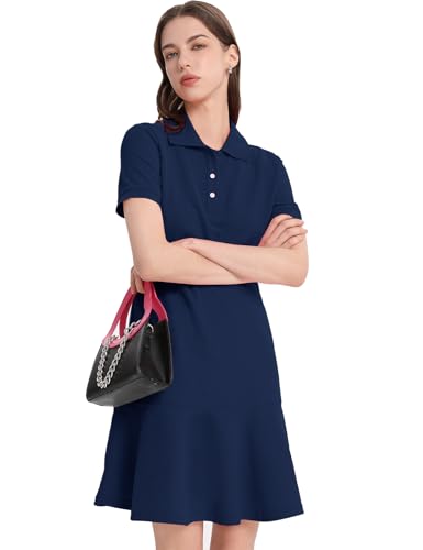 • [Material]: Made with a vintage pique texture on the outside and ultra-silky inside, lightweight, skin-friendly, breathable and quick-dry for all day cool and fresh. Women's polo dresses, collared dress for women, collared golf dress, summer mini dress.