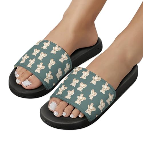 Teddy Bears Funny House Slippers for Women Men Lightweight Open-toe Slide Shoes for Bathroom Swimming Beach