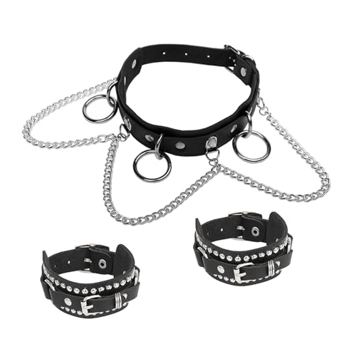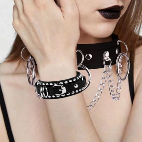 Material: Faux LeatherMetal type: ZincClasp type: Buckle ClaspGem type: No Gemstone★Premium Material★ Made of high density PU leather,waterproof and last-long,smooth surface soft and tactile good.★Ring and Chains Design★ 35mm o-ring is made of quality alloy,fine workmanship,not easy to fall off.Show your classic contemporary gothic style★Adjustable Size ★5 Holes Neck Necklaces Collar---16.3x0.97;Fit for Neckline(12-15“);2Pcs Buckle Hands Bracelets ---9.36x1.17;Fit for Wrist (7-9“).★Goth Jewelry Set★ Chic,eye-catching,good Ideal for theme party,cosplay,concerts,hiphop,night club shows,halloween,Dating or any other occasion you want,you will get more complimen.★Try a New Look★ The novelty jewelry accessories is a symbol of individuality,freedom,unrestrainedness,never out of date.Easy to show your strong strendy personality,create your own unique style! Perfect for everyday use. top-grade materials and excellent craftsmanship ensure long-lasting durability.