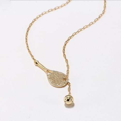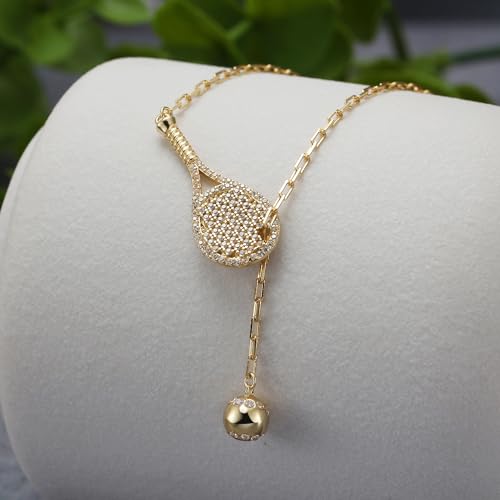 sizzling ! Lovematch Tennis Lariat Plus Racket and Ball Necklace - 18K Gold Plated Over Sterling Silver | Tennis Charm Necklace for Women, Christmas Gifts for Tennis Lovers