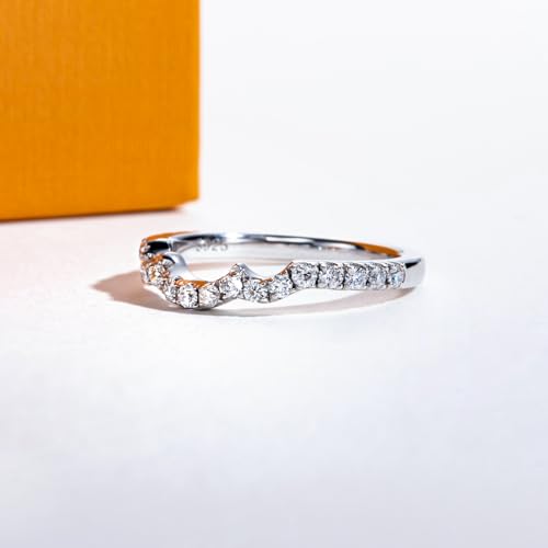 • 【925 Sterling Silver】Moissanite curved eternity rings feature 925 sterling silver, not easily discolored or deformed. It’s lead-gratis, nickel-free, and hypoallergenic. This ring will not turn your skin green, red, or itchy. This Moissanite band is understated and luxurious, can be worn on any occasion, whether a formal evening event or everyday casual, and never goes out of style.