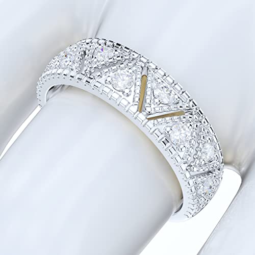 5.5mm Wide Sterling Silver Vintage Milgrain Simulated Round Brilliant Cut Diamond or Moissanites Unisex Wedding Ring